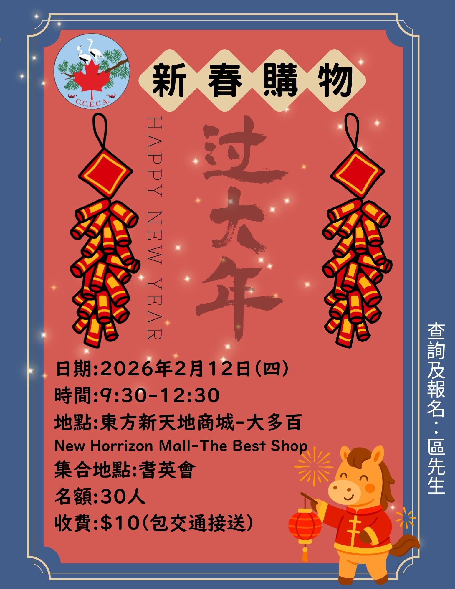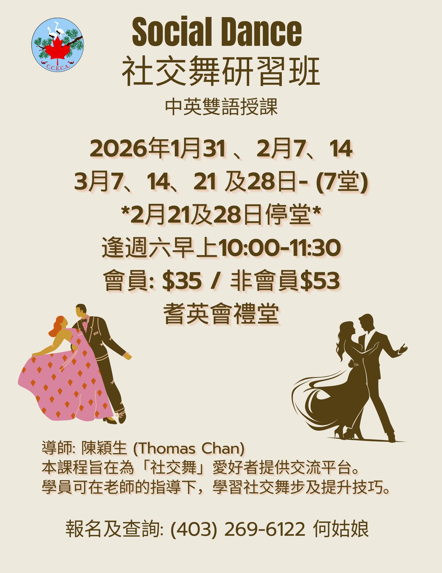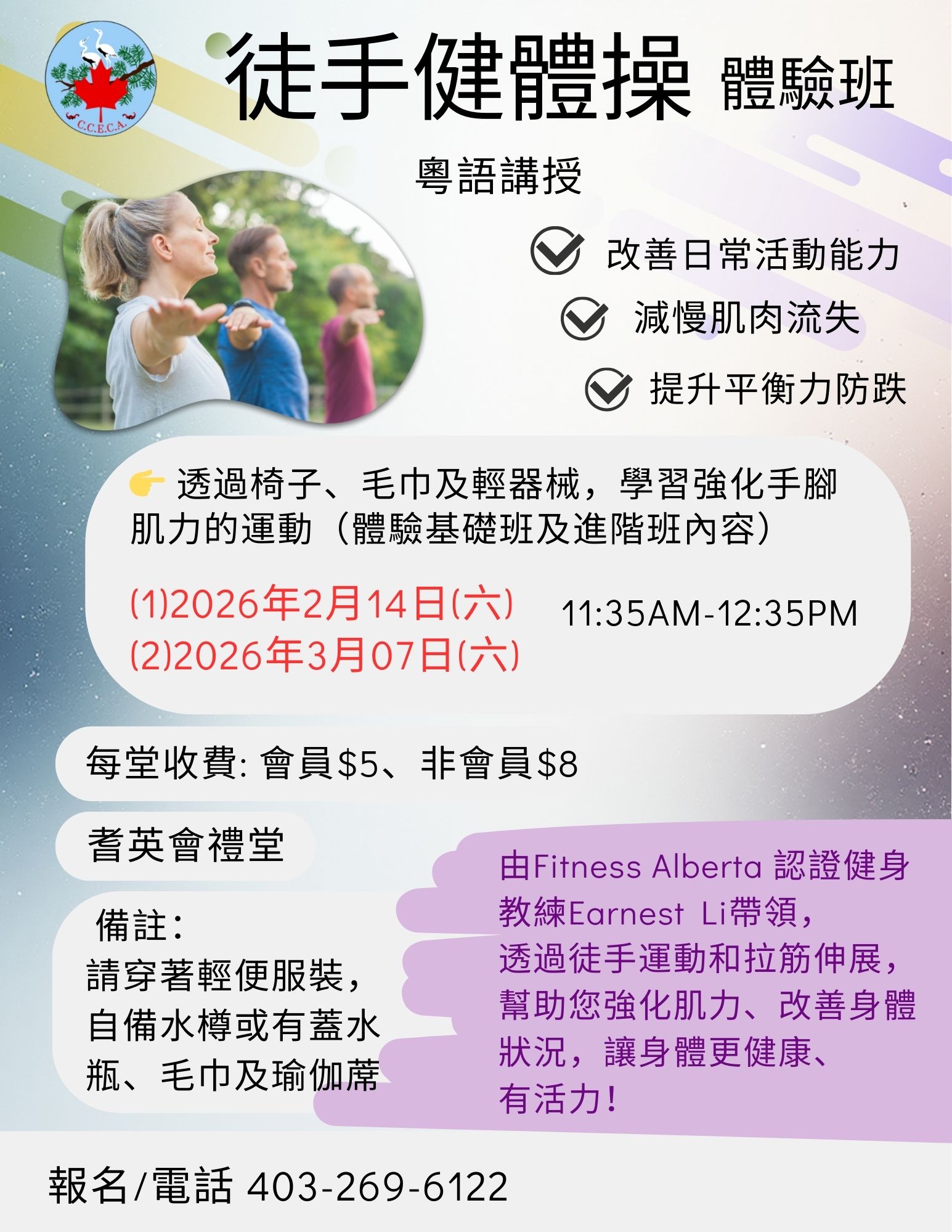 一次性活动、讲座及旅遊 2026 社工义工报税服务 CVITP (2026年1月至5月) 花燈映月元宵文化慶典 (2026年2月1日) 法律与你讲座 (2026年2月5日) 2026年度旅行团 點撃下載2026年旅行團簡介 古巴8天豪华深度游 (2026月1月13至20日) 墨西哥坎昆雅古迹7天游 (2026年1月13日至2月6日) 摩洛哥深度探秘12天游 (2026年3月15日至25日) 土耳其十二天风情之旅 (2026年4月18日至29日) 溫哥浪漫春櫻5天遊 (2026年4月6日至10日) 康乐及文教活动 禅绕书班 (试堂 - 2026年1月26日, 2026年2月2日至23日) Sketching Trail Classes (February 14 & March 7, 2026) Lunar New Year Shopping Tour (February 12, 2026) Crash Sketching Class (February 28 - April 4, 2026) Zumba Dance (Feb 28 - Apr 4, 2026) Social Dance (Jan 31 - Mar 28, 2026) 书法班 (2026年1月24日至2月21日) 素描速写班(2026年1月10日至2月14日) 徒手健体操 (2026年1月3日至2月7日) 动感尊巴舞 (2026年1月3日至2月14日) 太极拳 (2025年12月11日至2026年2月26日) 国际土风舞及西方排排舞 (2025年11月27日 至 2026年2月5日) 偶到活动 乒乓球 (全年活动, 逢星期一及三下午) 长者卡拉OK (全年活动, 逢星期五下午) 中国象棋 (全年活动, 逢星期一至五下午) 精神健康及同行支援小组 照顾者同行网:Zoom网上支援小组 (2025年5月8日至12月11日) 男天汇聚伴我行朋辈支援小组(粤语) (4月14日开始, 逢第二及第四个星期一) 保健服务及讲座 耆英会保健中心 (2026年2月6日及20日) 足部护理诊所 (2026年1月12日及26日) 足部护理诊所 (2026年2月9日及23日)